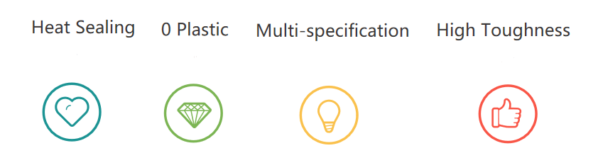 水溶性ヒートシール材を特殊加工した高靭性原紙にコーティングし、コーティング機で精密にコーティングすることでヒートシール機能を持たせています。 非コーティング、非プラスチック製品に属します。生分解性のため、従来のプラスチック包装の代替として使用できます。
