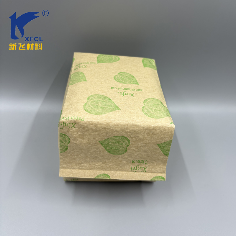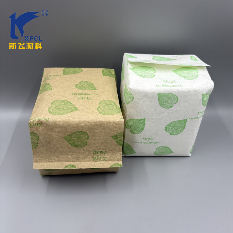 Xinfei リサイクル紙袋または紙は、あらゆる包装機で使用できます。包装機を変更する必要はなく、紙はフィルムよりも熱伝導が遅いため、ヒートシール温度を 135 ~ 150℃ に設定するだけです。